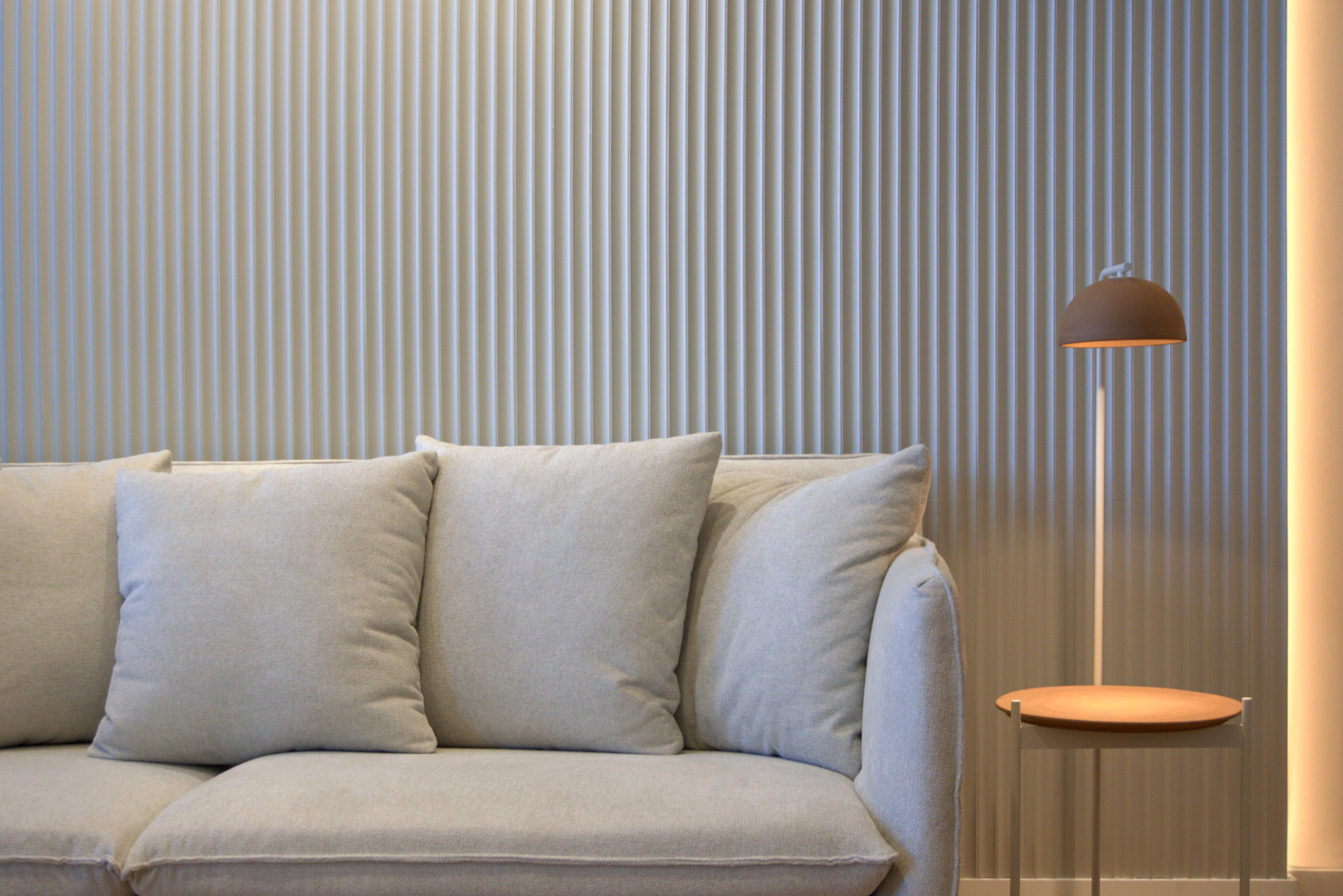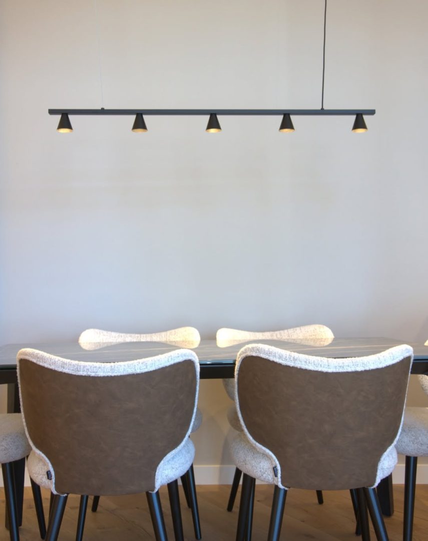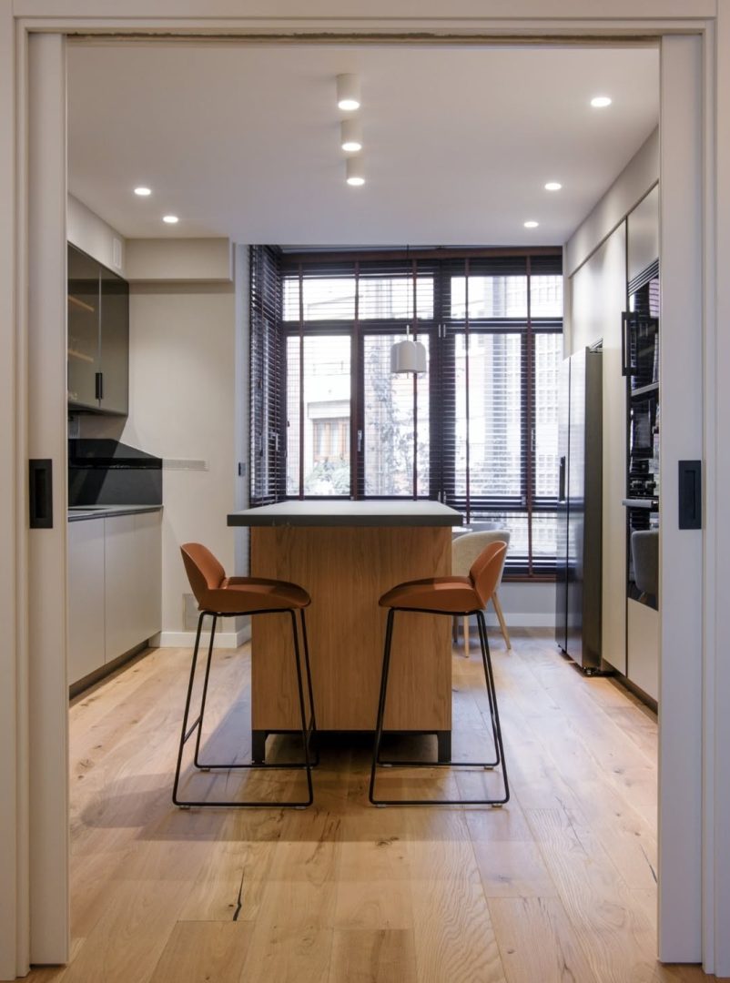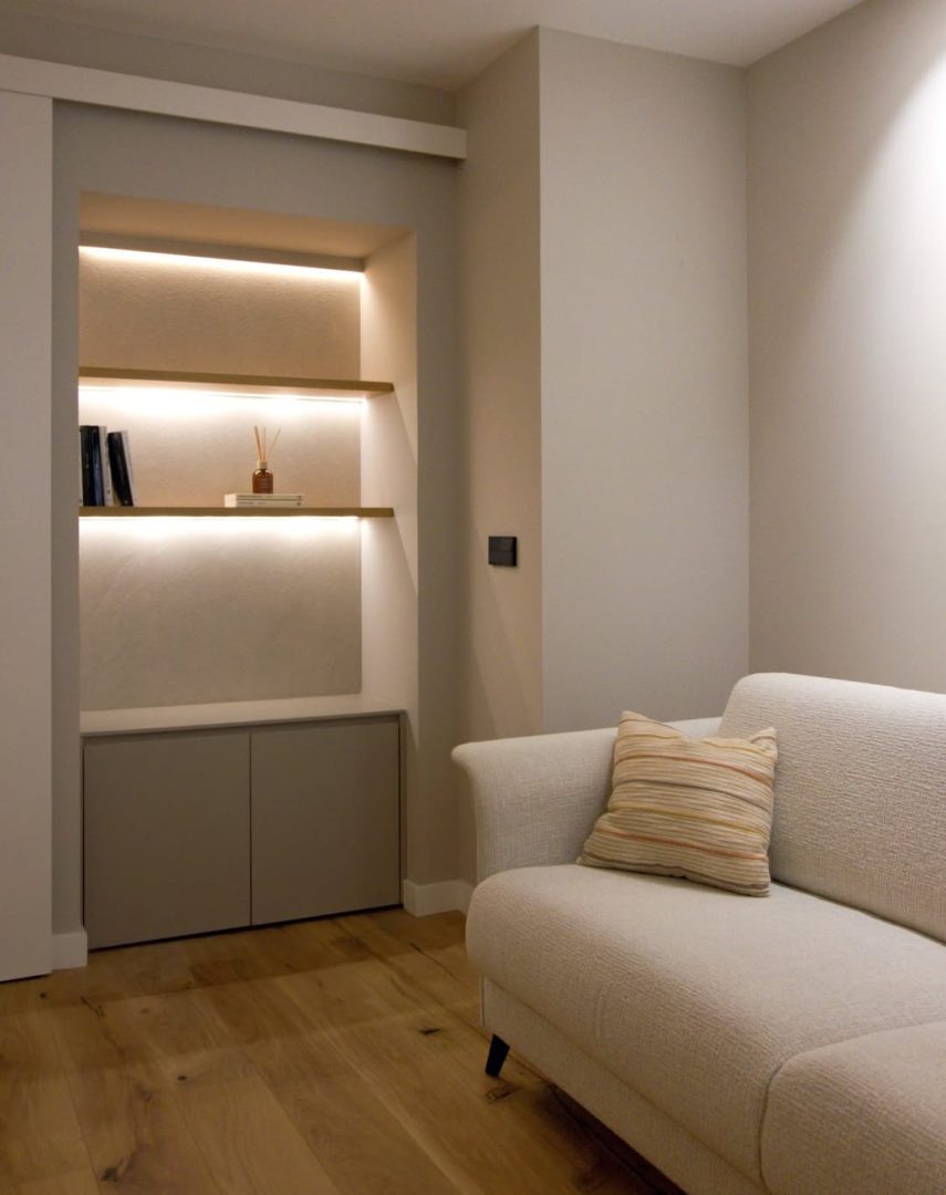 Cada estancia combina líneas minimalistas con piezas elegantes de materiales duraderos y atemporales, creando espacios que parecen expandirse y facilitar la vida diaria. La iluminación está cuidadosamente integrada: retroiluminación en paredes, bajo baldas de mobiliario y foseados en pasillos y el family room genera atmósferas cálidas y versátiles, adaptables a distintos momentos del día.